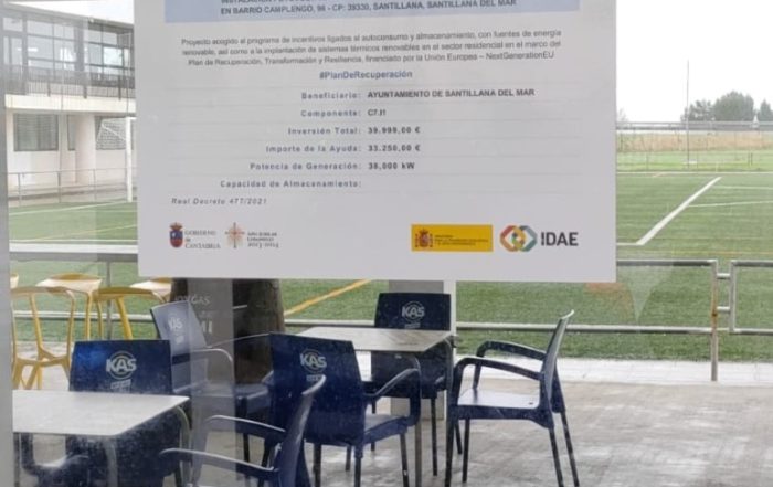Instalación fotovoltaica en el polideportivo municipal subvencionada por el Gobierno de Cantabria al amparo de la Orden IND/20/2022 en el marco del Plan de Recuperación, Transformación y Resiliencia